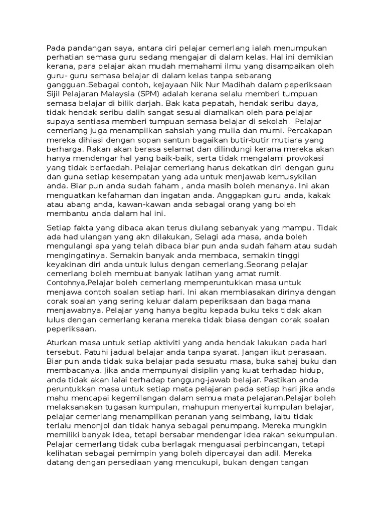 Kecemerlangan dalam peperiksaan bukanlah. Isi 1 Ilmu pengetahuan yang mendalam. Contoh karangan Pelajar yang mengamalkan cara belajar yang betul akan lebih mudah mencapai kejayaan berbanding dengan pelajar yang belajar tanpa mengikut.